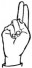 На ћирилици написано ВАЛЕНТИНА КРГА састоји се из 13 слова [?]. Исписано ћириличном једноручном азбуком за глувонеме: